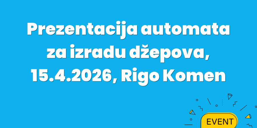 Za vas pripremamo prezentaciju automata za izradu džepova, koja će se održati u srijedu, 15. 4. 2026., u sjedištu tvrtke Rigo od 9:00 do 16:00 sati.
